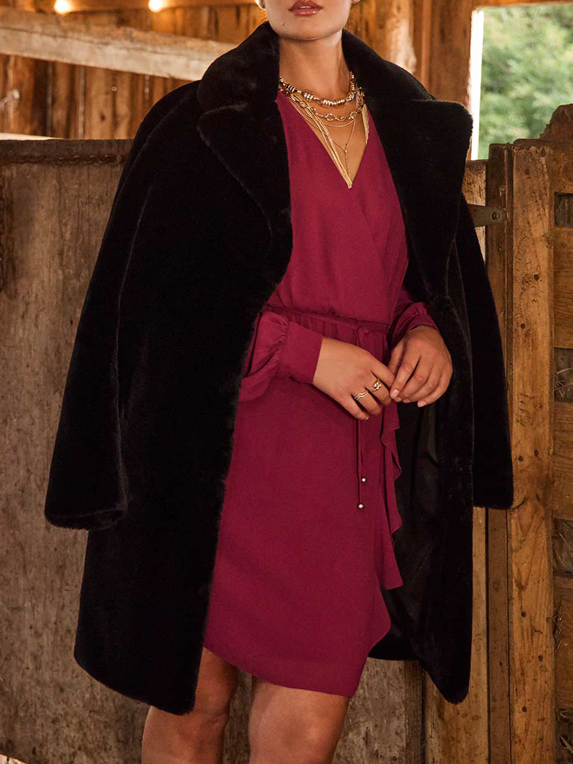 Let your flirty and feminine side show in this chiffon crossover mini dress. With a graceful front ruffle and a body-hugging silhouette, you'll feel like a million bucks.