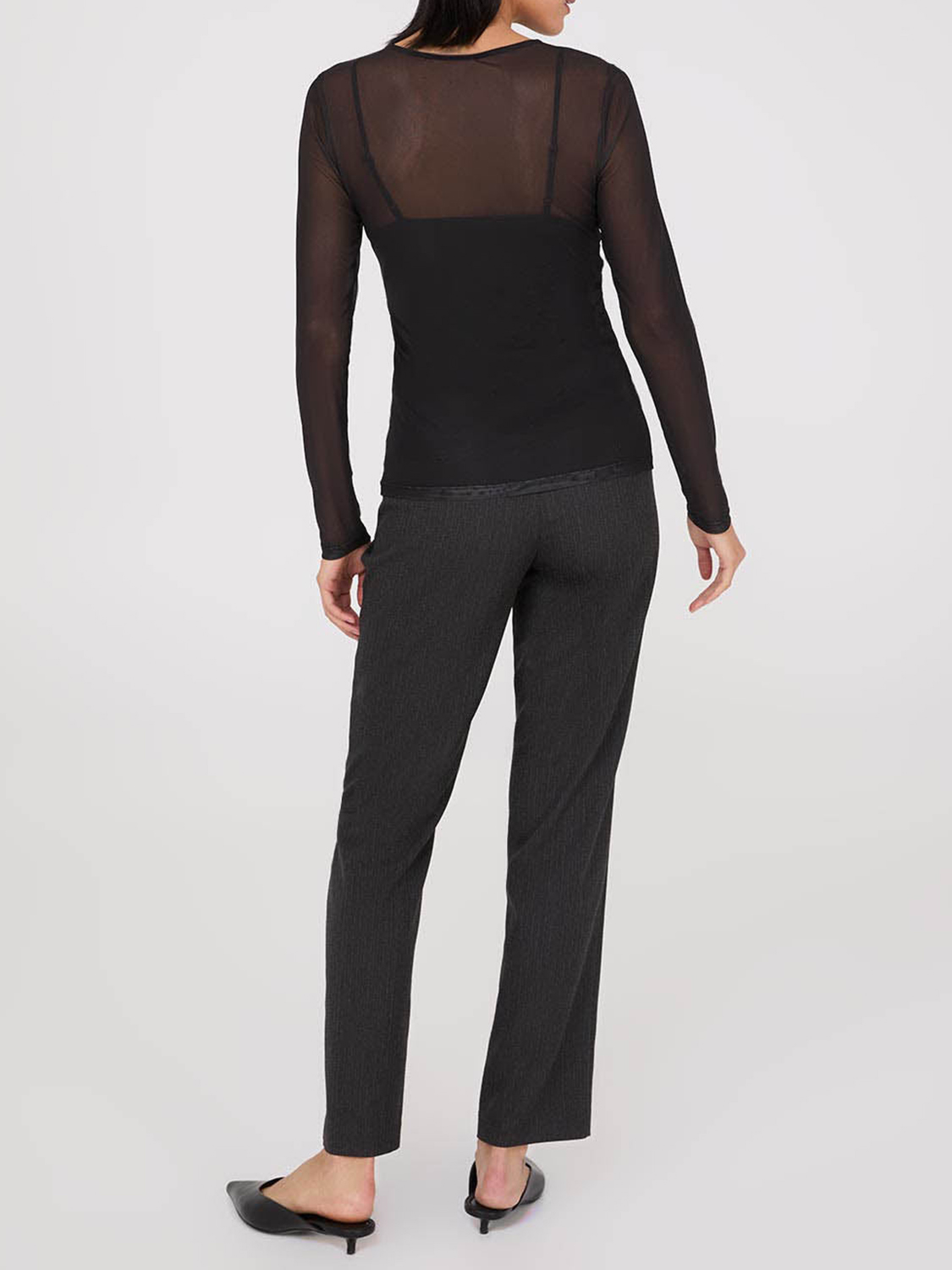 Perfect for a night out, this long sleeve mesh top has a dark floral placement that will complete your evening look.