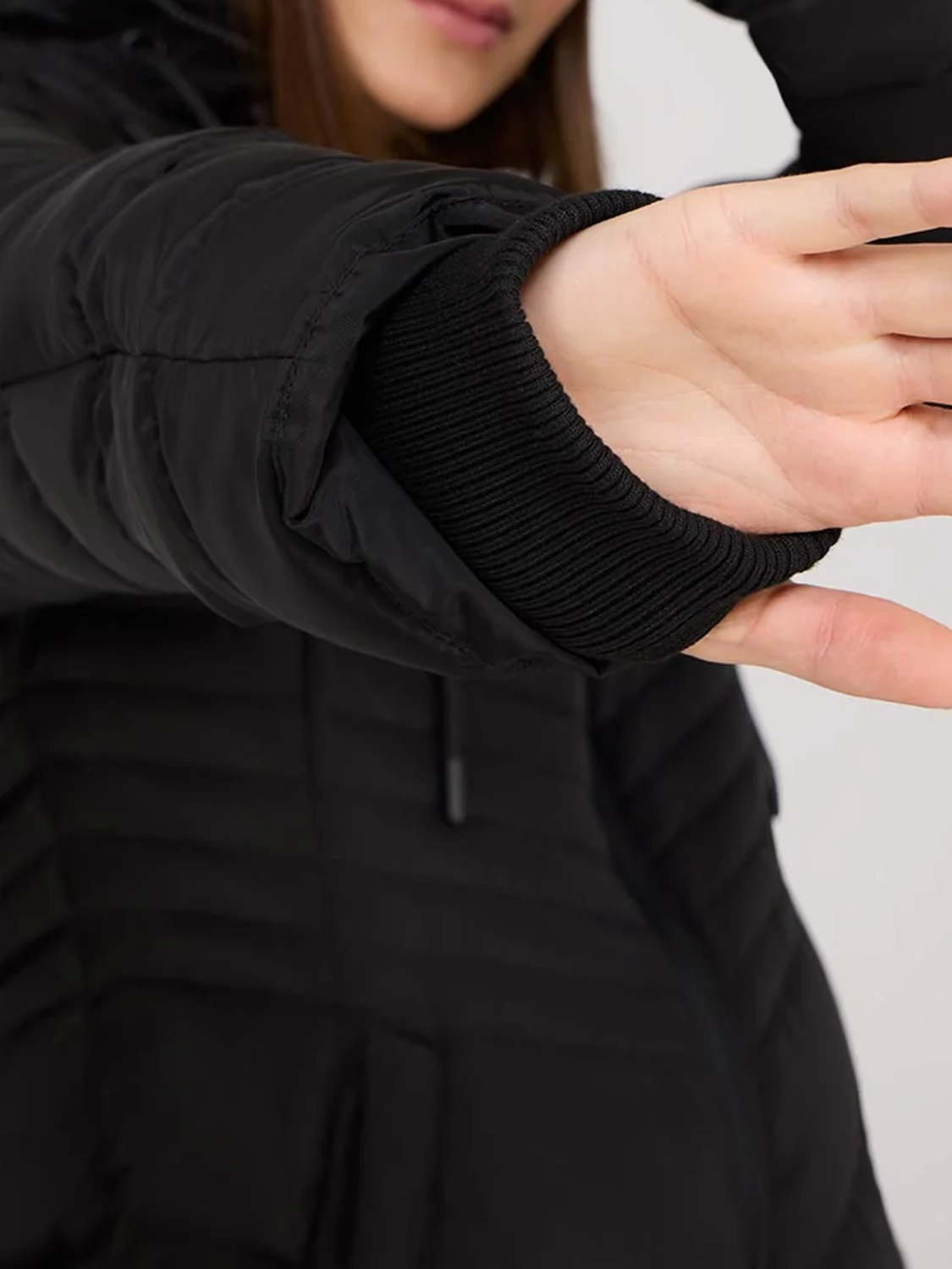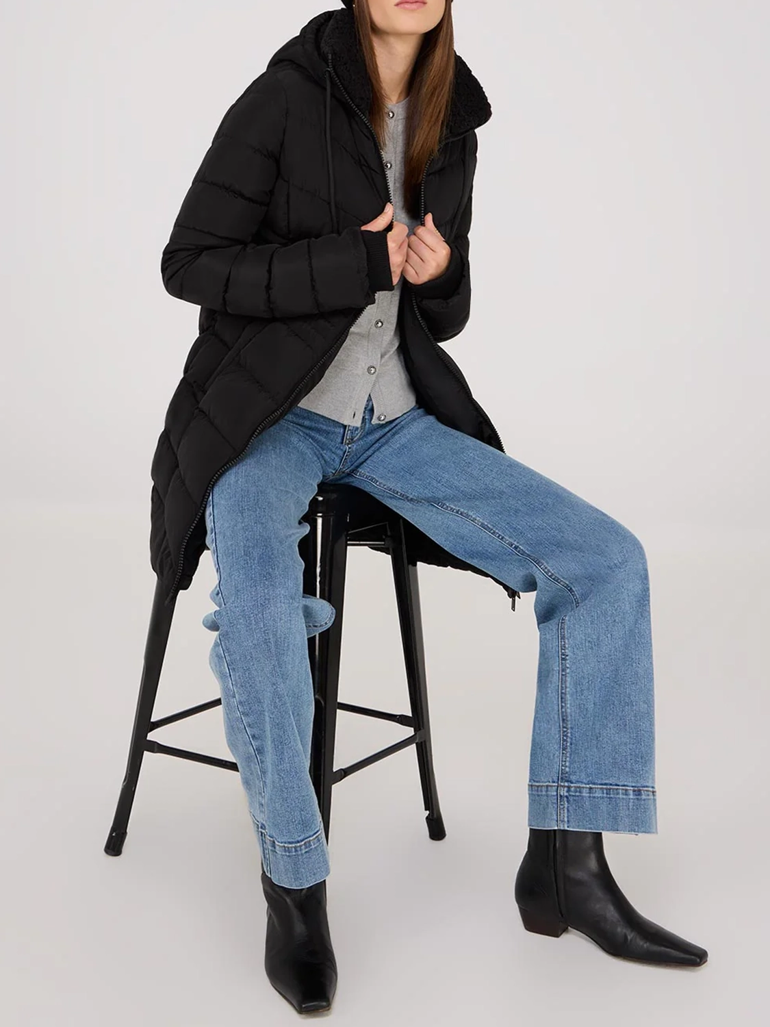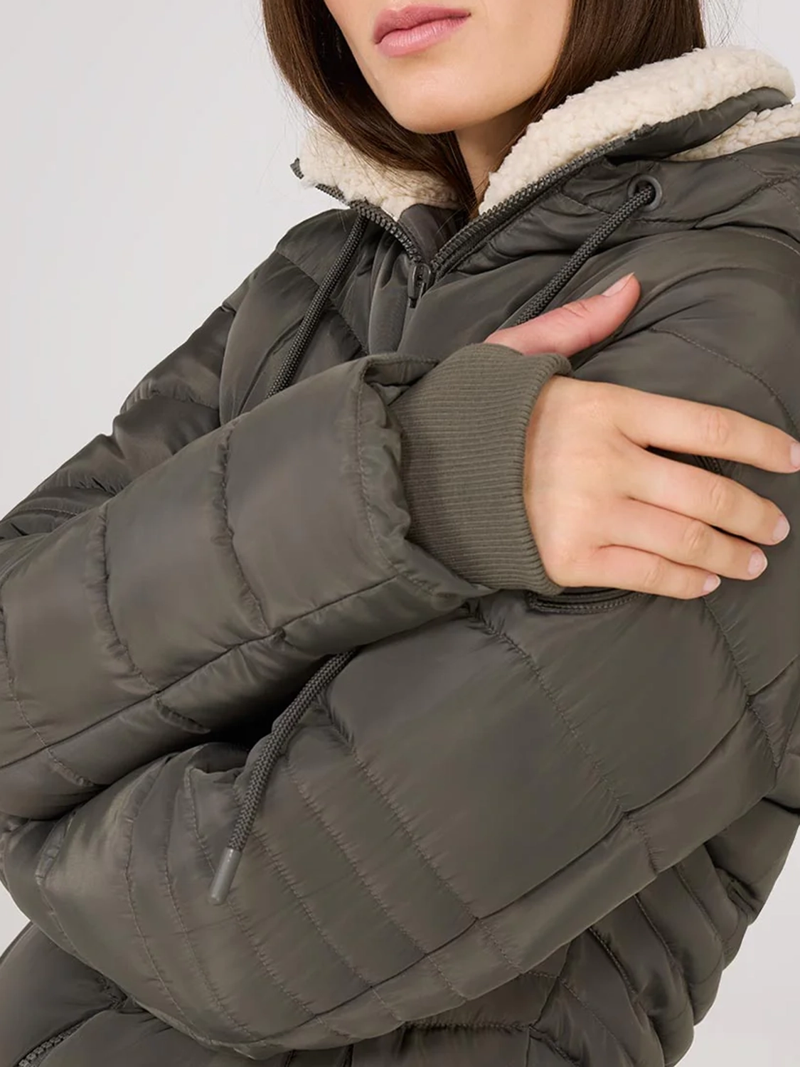 Whether you're braving the weather or strolling around town, this puffer has a protective Sherpa lined hood with an adjustable cord for customized comfort!